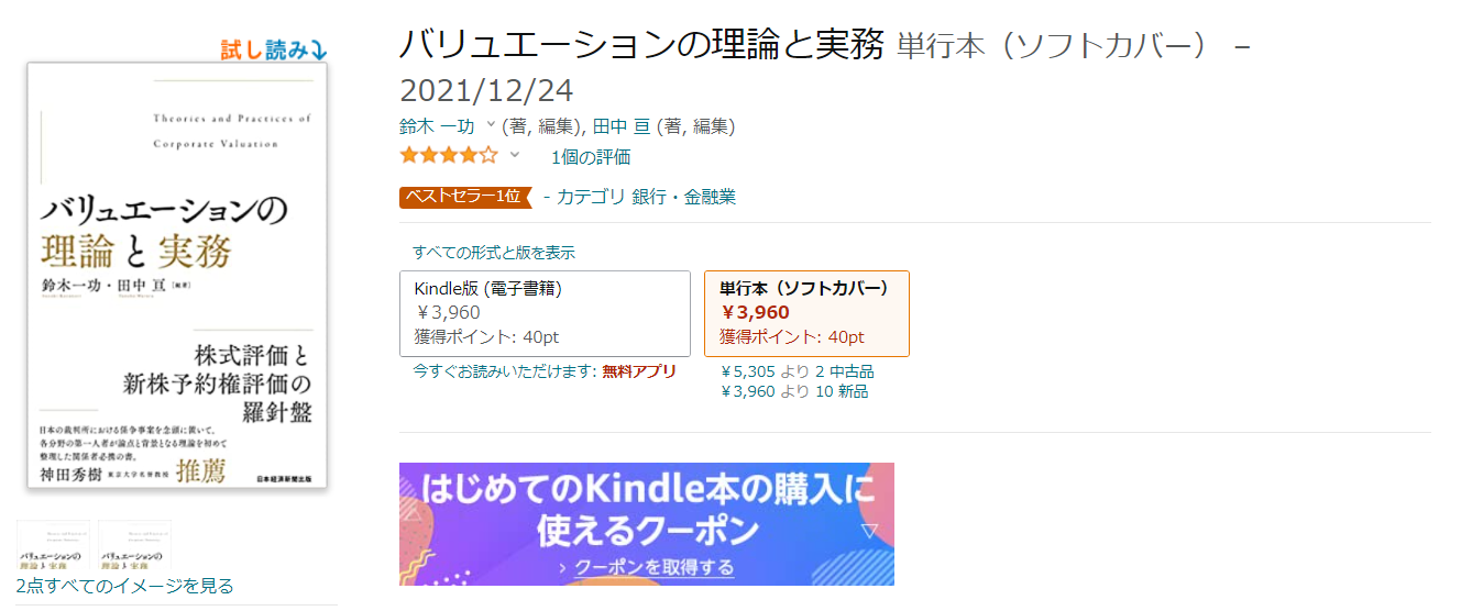 弊社吉村が共著した『バリュエーションの理論と実務』(日本経済新聞出版)がAmazonのランキング(銀行・金融業、12月28日付)で1位を獲得しました。
