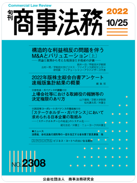 弊社吉村が旬刊商事法務に「構造的な利益相反の問題を伴うM&Aとバリュエーション〔上〕―理論と裁判から考える現預金と不動産の評価―」を寄稿しました
